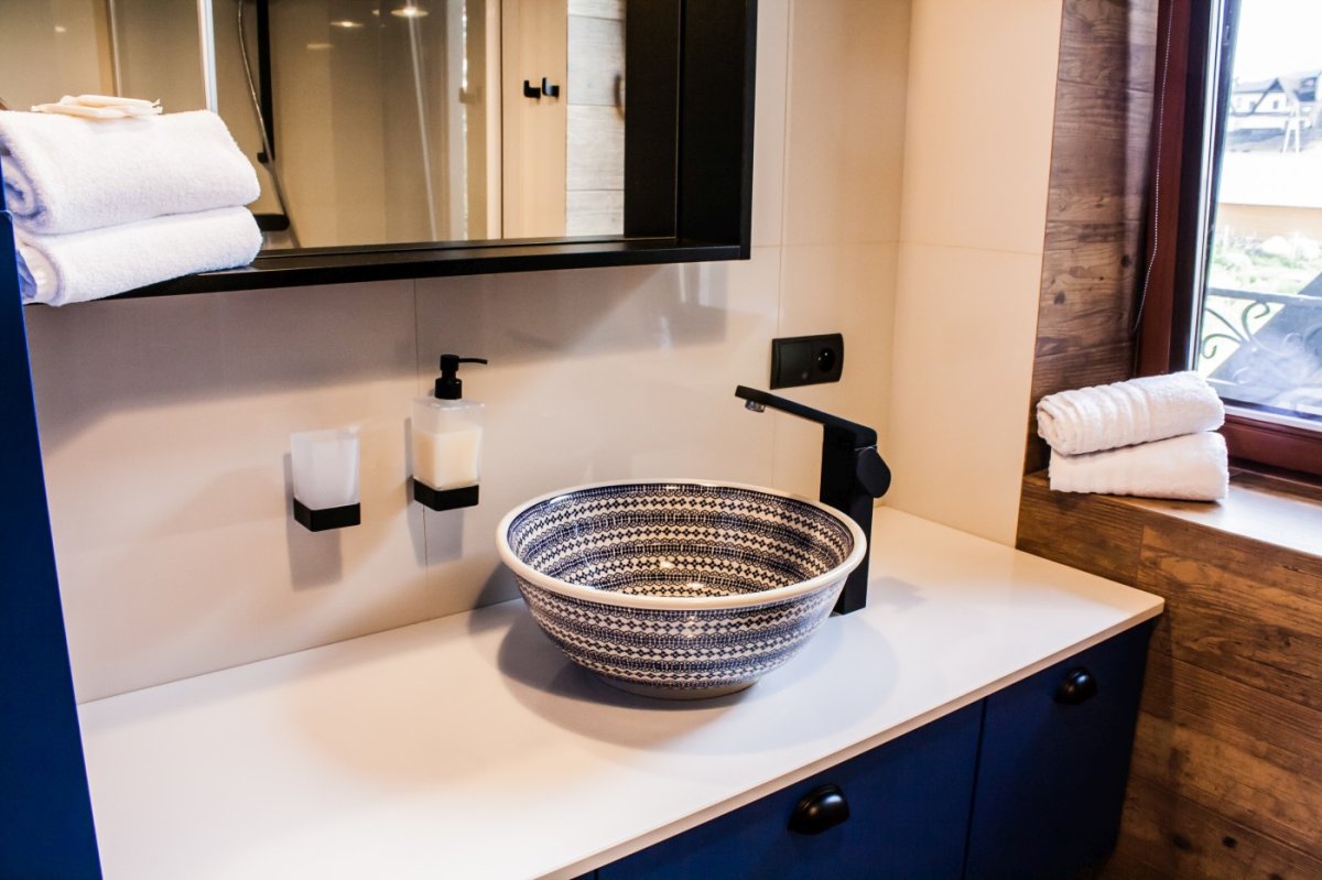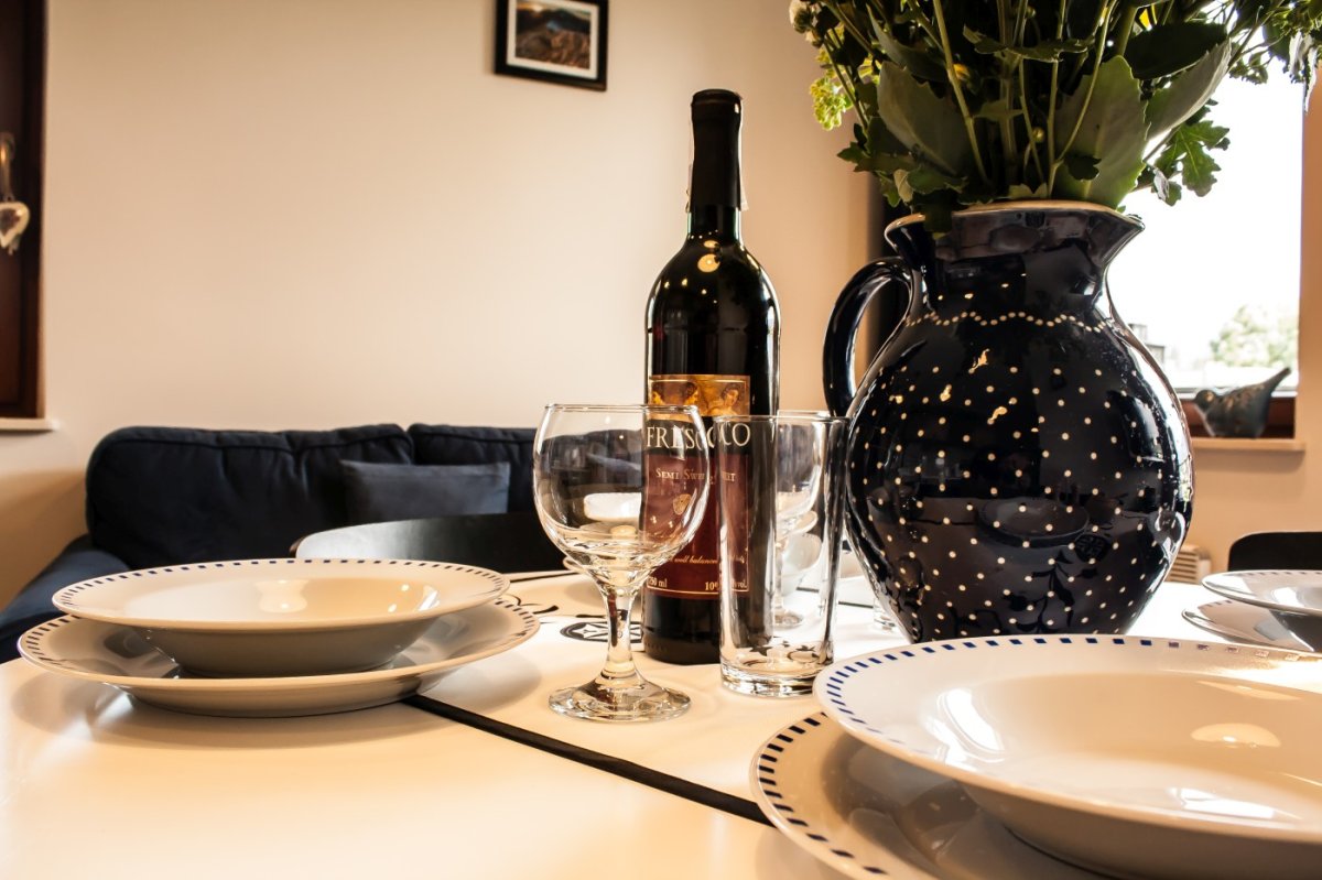 Zapewniamy dla każdego gościa komplet pościeli poduszka z pierzyna oraz duży ręcznik kąpielowy. W salonie jest możliwość rozłożenia sofy jako miejsca noclegowego dla dwóch osób, pokój posiada rownież telewizor LCD 42 calowy. W łazience znajduje się kabina prysznicowa. Aneks kuchenny wyposażony jest w mała lodówkę z zamrażalnikiem, zmywarkę do naczyń, płytę indukcyjna, kuchenkę mikrofalowa, czajnik elektryczny. Komplet naczyń i garnków oraz szereg dodatkowych akcesoriów kuchennych.